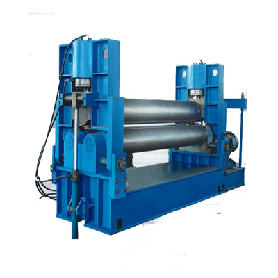 用于常溫狀態下將板材卷成圓筒形、圓弧形、圓錐形。性能優越,結構緊湊、操作方便。上輥升降、翻倒裝置采用液壓驅動。主傳動由電機通過三角帶傳遞,減速器帶動兩下輥驅動,卷制柔性好。采用PLC可編程顯示器控制,上輥升降采用位移傳感器檢,測數顯表顯示。提高產品效率和產品質量,翻倒架采用液壓翻倒。